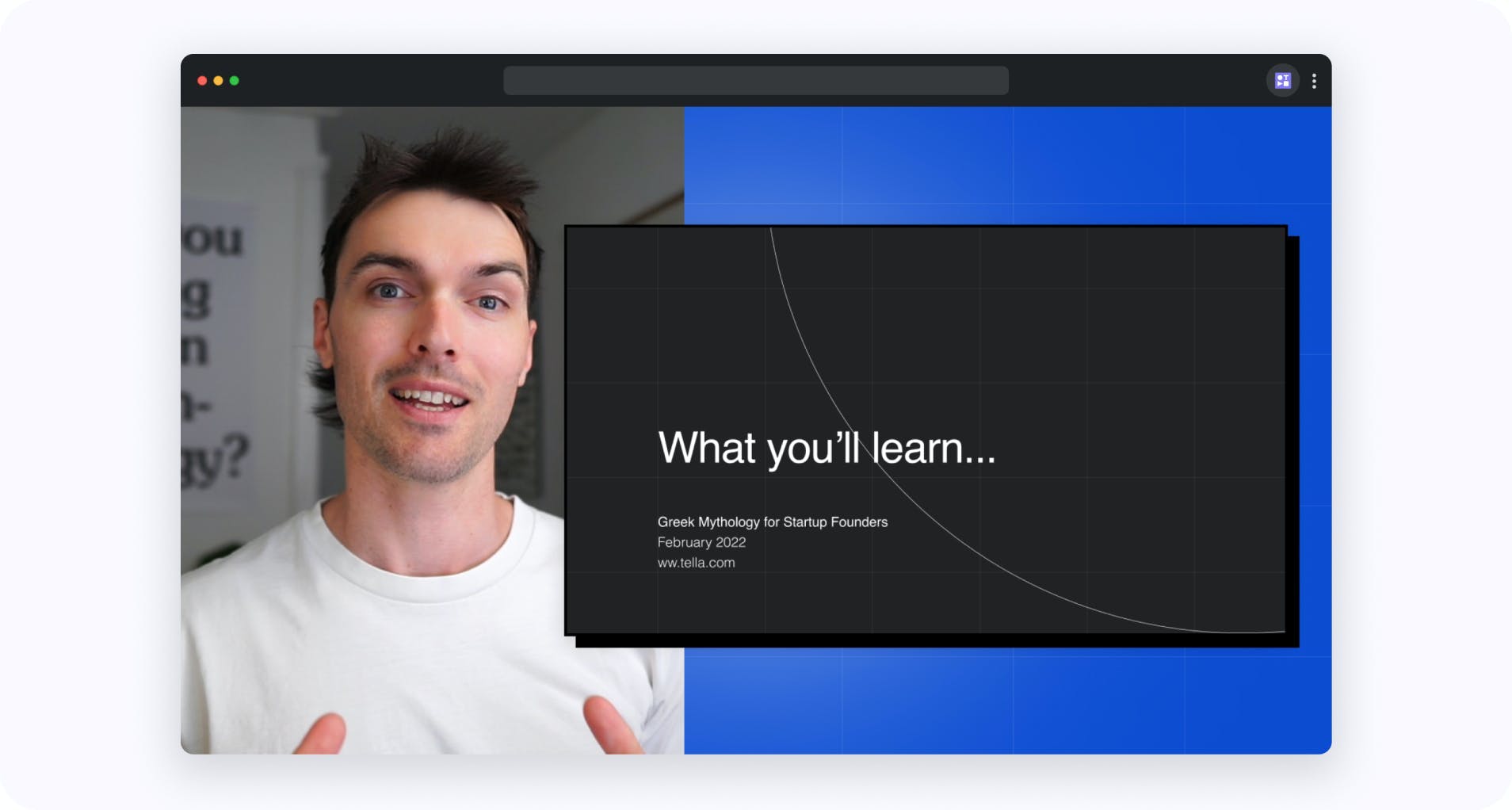 A course promo video is a video you make to promote your upcoming course. The purpose is to generate excitement for your course and give potential students an idea of what they’ll get if they sign up or purchase the course. In Tella’s screen recorder, you can record both your screen and webcam and change the layout, so your course promo video is clear, professional, and effective at building your audience.